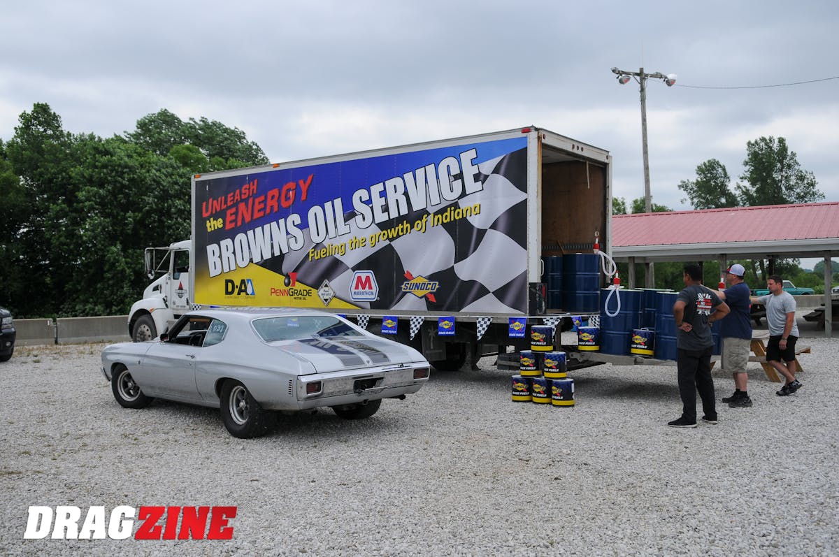 Tutterow, better on both ends of the racetrack—even despite the slowing 223 mph trap speed as he pulled the parachutes to regain control—was well out on Whiteley. Tutterow’s machine drifted left of the groove into the marbles and shot across the racetrack, making major contact with Whiteley’s J&A Service Camaro. As you’d expect with carbon fiber composite bodies, the initial impact tore the bodies free from the cars like wet toilet paper, even buckling the roof away from the chassis on Tutterow’s car.Â