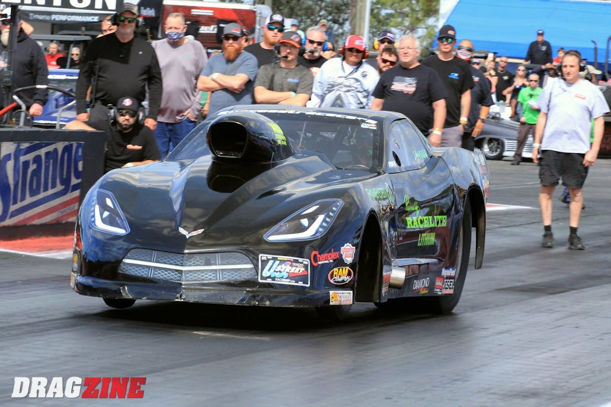 Georgia native Walter Lannigan, in his 1953 Corvette, was set to face Dillon Voss in his Florida-based 2017 Corvette in the first pair out, with a trip to the final round on the line. Lannigan, however, couldn’t get his car to fire and never made the turn to the water box. That handed what appeared to be a single into the money round to Voss. But after Voss completed his burnout, the Corvette lost fire and had to be pushed back behind the beams. Voss tried valiantly to re-fire and ultimately staged the car with the starter — a violation of the rule stating the car must be under power in order to take the tree and advance. That disqualified Voss.