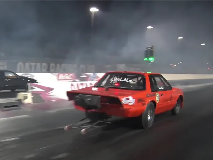 Engine and transmission swaps are pretty common in drag racing these days, but some like to get really creative wth their projects, cramming some pretty potent small displacement motors into what are traditionally V8-powered machines. And that’s exactly what Mohammed Haji from Qatar has done, as he’s rocking a boosted six banger from a Nissan in his Mustang, running deep into the four-second range with this radically different engine swap.