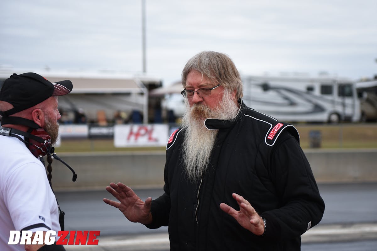 Anderson was running opposite of Norwegian Fred Hanssen in the opening session of qualifying at Auto Club Raceway and lost cylinders early, slowing him in the front half of his run — a point which may have saved he and his dragster in the end. Out his windscreen, Hanssen’s blown alcohol dragster was pulling steadily away, putting several car-lengths on Anderson’s A/Fuel dragster. Because of that, Anderson had a front row seat as the left rear slick on Hanssen’s dragster exploded at the finish stripe at the conclusion of a 5.31-second, 270 mph lick. Fragments of the tire struck the rear wing, taking away precious downforce and sending Hanssen across the shutdown area, directly into the path of Anderson, and into the guardrail.