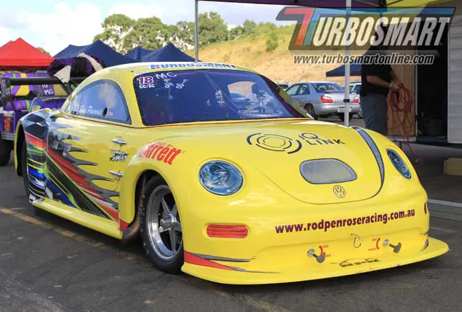 The pride of and joy of Beetle guru Rod Penrose, this is the next incarnation of his pure-bred drag racing VW’s, which has been designed and built to shatter the all-time VW elapsed time and speed records. Penrose had previously campaigned an earlier model Beetle (the more traditional model, as we like to think of them) that held the title of Australia’s quickest Beetle, garnering the record with an 8.96 in the 1/4-mile. The car was a regular sight at Aussie racing events and had a virtual cult following among VW enthusiasts. But in the drag racing game, the only way to go is up, and so Penrose set out to build a new car capable of even quicker and faster performances. The result is this late model Beetle that’s already shattered its predecessors numbers.
