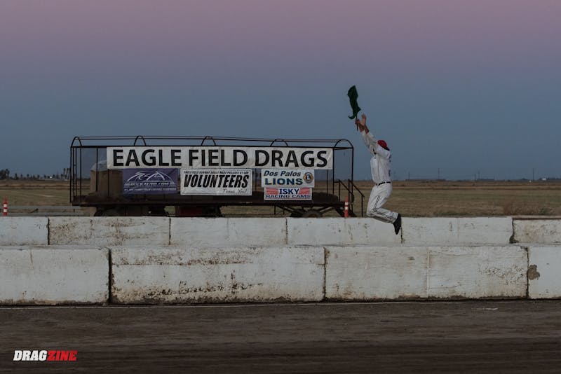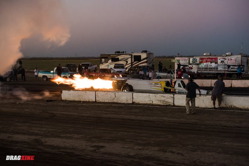 Locked door-handle to door-handle, Robinson’s Anger Management supercharged Camaro drifted right of the groove beyond half-track and glanced off the retaining wall. Reacting instinctively to save the racecar, Robinson overcorrected and sent the car spinning around, at which point it captured air under its flanks and somersaulted across the finish line. While a scene reminiscent of other devastating and deadly accidents in recent years, Robinson was fortunate that the car returned to earth on its passenger side rather than slamming down roof-first, sparing him serious injury. According to Robinson’s team, he climbed from the car under his own power and was released from the medical center.