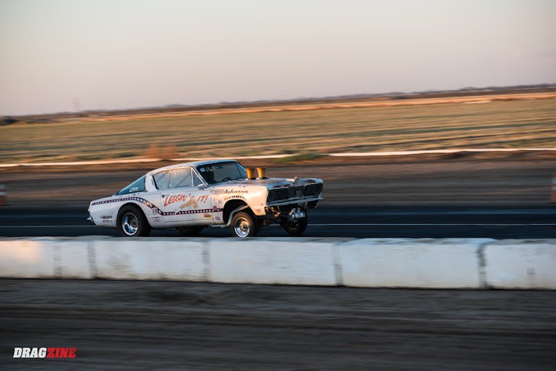 Locked door-handle to door-handle, Robinson’s Anger Management supercharged Camaro drifted right of the groove beyond half-track and glanced off the retaining wall. Reacting instinctively to save the racecar, Robinson overcorrected and sent the car spinning around, at which point it captured air under its flanks and somersaulted across the finish line. While a scene reminiscent of other devastating and deadly accidents in recent years, Robinson was fortunate that the car returned to earth on its passenger side rather than slamming down roof-first, sparing him serious injury. According to Robinson’s team, he climbed from the car under his own power and was released from the medical center.