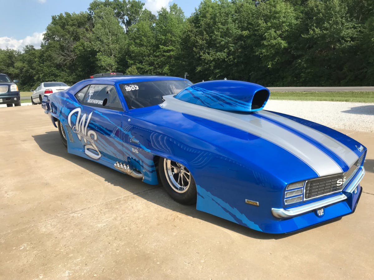 Marinis, a longtime hitter in the X275 ranks who has been earning his stripes in a Pro Modified car in recent seasons, took delivery today of this striking ’69 Camaro, which he’ll press into duty in various events around the Northeast and East coast, along with selected NHRA Pro Mod Series national events. Marinis last competed with the NHRA at Englishtown last summer, driving a likewise bright-blue C7 Corvette built by Bickel back in 2015. Marinis’ new car is, interestingly, strikingly similar in appearance to the car that Weatherford has been racing to this point in the season.