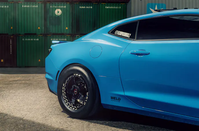 This particular car, showcasing the WELD Racing black Ventura wheels front and rear, is a potent piece. The sixth-gen Camaro’s mill sports Texas Speed pistons and rods (with ARP L19 bolts), LT1 6.2L cam kit V2, 3/8-inch chromoly pushrods, and Gen 5 LT1 polished dual valve spring kit. There are also ARP’s LT1 6.2 head studs, Johnson Lifters race-style drop-in lifters, a Katech Gen-V LG wet sump oil pump, an LT4 high pressure fuel pump, LT4 injectors, Holley Ultra Low Ram manifold with port injection, ReFlex Plus control unit, Fuel Injector Clinic 1000cc injectors, Speed Engineering long tube headers and X-pipe, DSX Tuning auxiliary fuel pump, a flex fuel sensor, and an E85 custom flex fuel tune. All of that is intended to support the boost and necessary fuel for the intercooled ProCharger D1X supercharger.