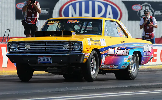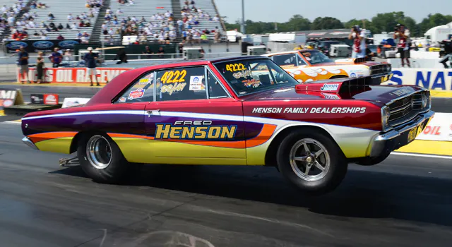 Jim Daniels led the field into eliminations with a stout 8.39 effort in qualifying, but was sent packing in the opening round when the equally tough Jim Pancake welded him to the tree and stole one on a holeshot, 8.92 to 8.84. Westcott Jr. meanwhile, with a room full of Hemi Shootout trophies already to his credit, reeled off low elapsed time of the round at 8.42. But his march through the field came to an early and abrupt end as well, as Fred Henson left the outspoken “War Fish” pilot napping at the tree on his way to an 8.58, aided by a stellar .012 reaction time.