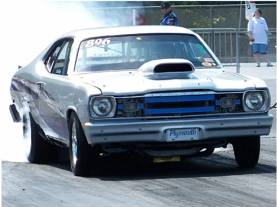 Moparman896 is a member on Yellowbullet and has a 1974 Duster. Running at the Ultimate Outlaws event at MIR, he was a semi-finalist. He’s only ran two events to date with a best E.T. of 5.69 but 2010 he looks to lose the snorkel for a 4” wrapped cowl and compete with his PAR Race Engines 526, single fogger, and a new fresh installed PTC Converter.