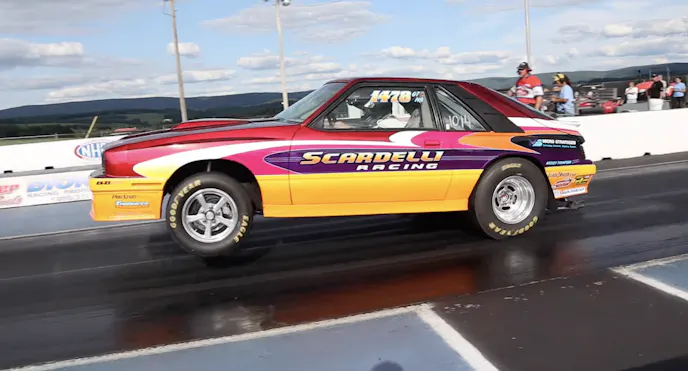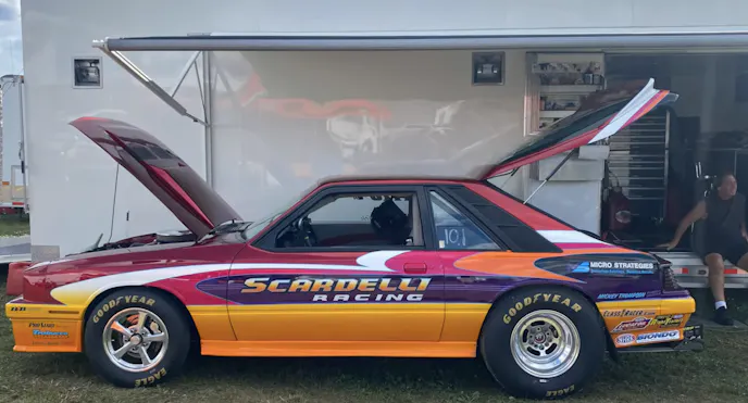 In NHRA Stock and Super Stock circles the name Scardelli is well-known and synonymous with Ford. Ray Scardelli has been competing in the two classes for over three decades with his stick-shift 1964 1/2 Mustang and his Ford Probe. Joining him at the track and racing alongside him is Ray’s son, Nick Scardelli, who campaigns the family’s Scardelli Racing name on his 1985 Mercury Capri RS in Stock Stock competition.