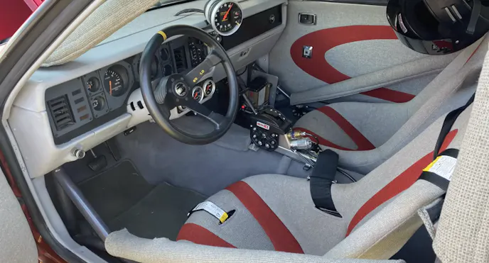 To start, the eye-catching paint scheme looks fantastic for being 15 years old. Nick has raced this car for over a decade and the original paint laid down by Circus Custom Paint has held up beautifully. The colors, design, and Scardelli Racing lettering fit the car, and make it appear like it was transported straight from the mid-’80s to today. The gray interior with dark red accents looks right at home in the Capri, and adds to the overall ’80s look of the car. As part of the class rules, Nick’s Capri must run an engine from the same manufacturer as the car. His father, Ray, has a reputation for building high-performance small-block Ford engines for the family’s Stock and Super Stock class race cars.