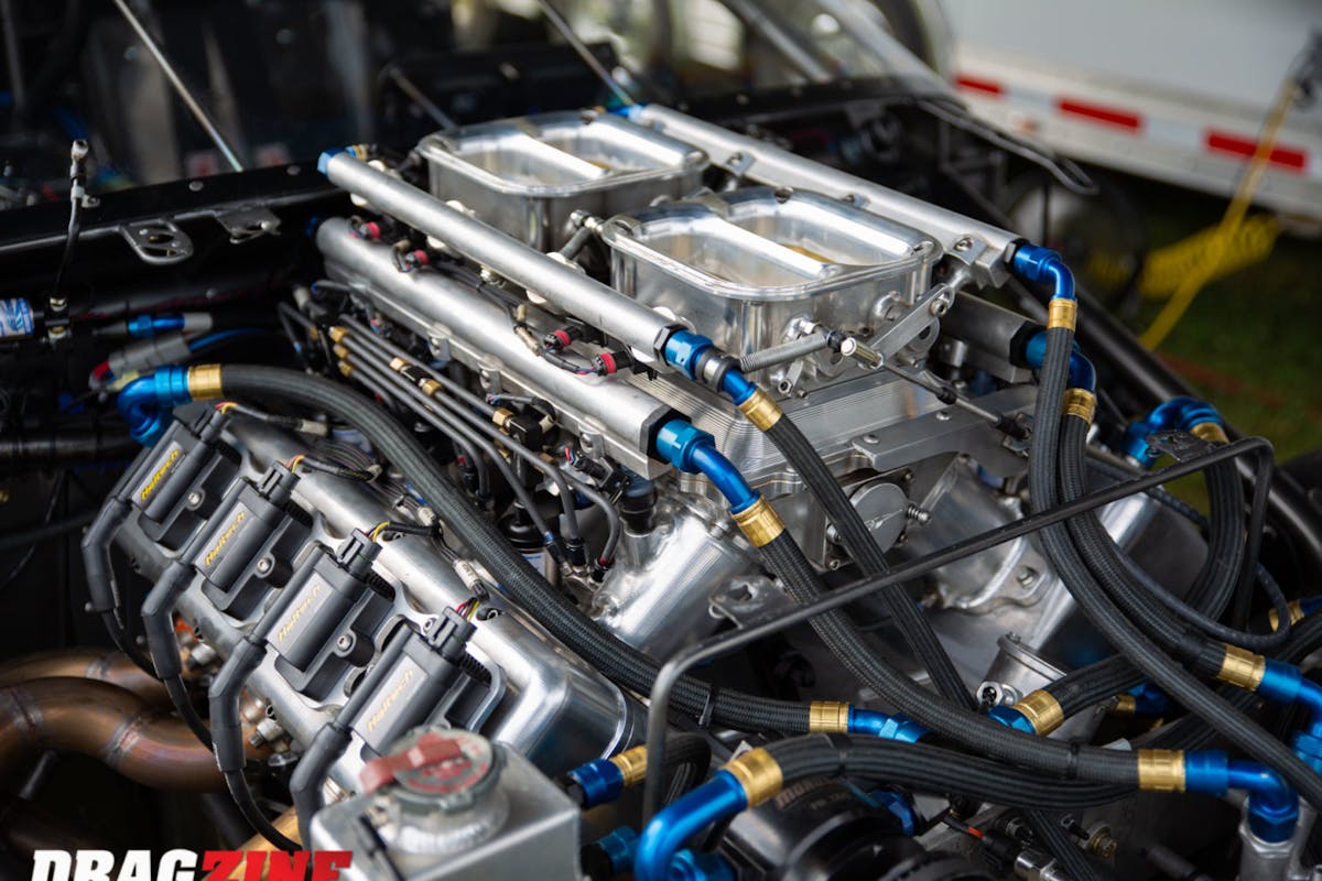 “Every other engine combination has better heads and intakes available, that’s why we had the billet parts made for the top end of the engine. Trying to make this thing live so far has been a challenge, so we had to move to a dry sump oil system to help the bearings survive. Since we’re running a 499 cubic-inch small-block we only have to weigh 2,400-pounds with a five-speed transmission. After we get the combo figured out it should run in the 4-teens no problem,” Allen explains.