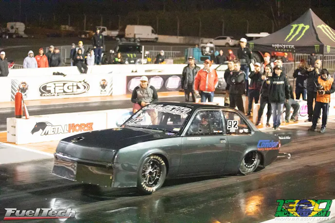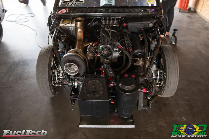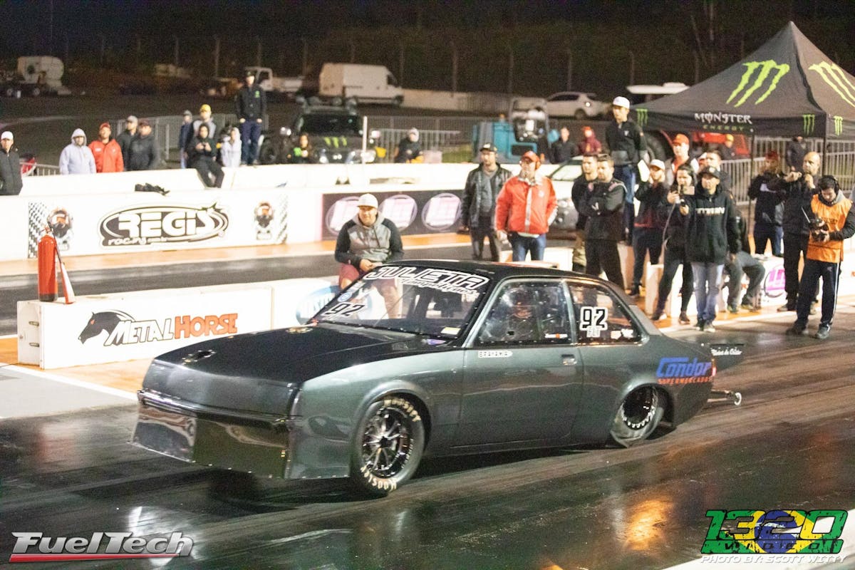 Gabardo’s Chevette is powered by a four-cylinder Volkswagen engine that measures just 2-liters in size. A Precision turbo crams boost into the mill as a FuelTech ECU controls the engine while Gabardo shifts his own gears going down the track. This combination stuffed into the 1,600-pound car netted a best pass of 6.98 while 1320Video was on location at the track with Gabardo.
