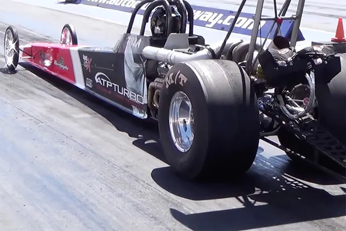 Enter Californian Chad Davis, who went down the road less traveled and assembled a 16-valve, 2.0L, inline 4-cylinder Volkswagen production engine to stuff between the framerails of a dragster. Davis added a Garrett GTX 88mm turbocharger to the equation, and the result was performances well down into the seven-second zone. In late 2013, Davis set the record for a production VW-powered car with a 7.05 at 202.18 mph, but last year, he upped his own ante in a big way, going 6.82 at 200 mph at the Auto Club Dragway in Fontana on a run that saw a head gasket split at 5.5-seconds into the run.
