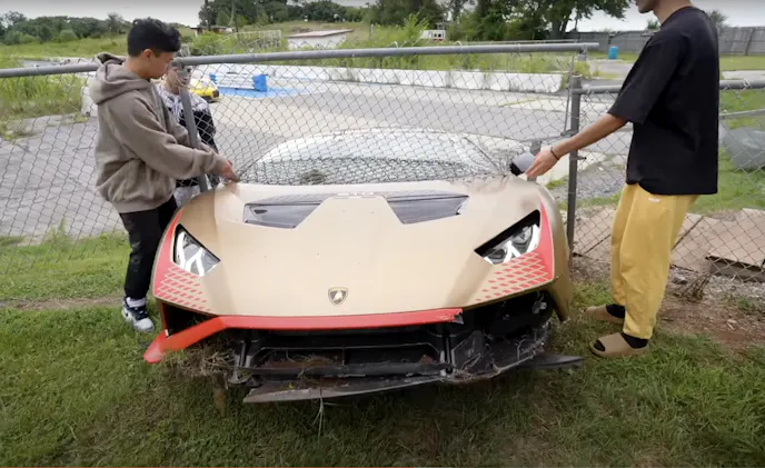 The Dobre brothers are four brothers who have amassed nearly 11 million followers on YouTube by filming “experiments, vlogs, dance videos, and pranks”….in other words, basically everything but performance driving. But every young guy with a fast car believes he’s a performance driver. So the Dobre’s and a small handful of supercars by some means got into 75/80 Dragway in Monrovia, Maryland, closed since 2013, and were filming high-speed runs up and down the dragstrip. Older brother Darius, driving a 640 horsepower Lamborghini Huracan STO, had a camera onboard as he sped down the strip in reverse, unaware of any markers or locators that someone fluent in drag racing would possess. Not until around the 200-foot mark (going towards the starting line, mind you), as his brothers frantically waved their arms, did Darius finally apply the brakes. That, of course, was much too late to stop, as he slid sideways and crashed into a berm and a fence behind the burnout box, doing what we can only assume are some costly damages to the Italian supercar.