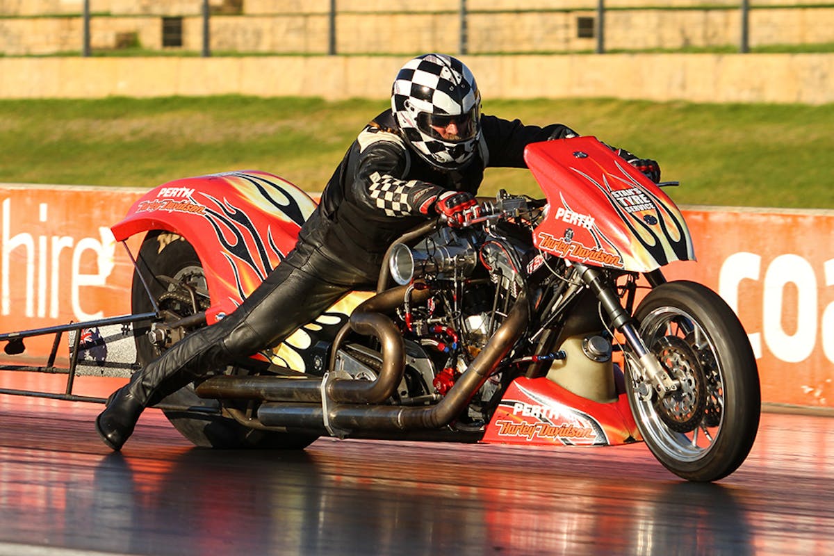 Meanwhile in a strong Top Fuel Motorcycle field, Western Australian Mark Drew came out on top with a 6.586, but was left disappointed he could not get the full potential out of his nitro-fuelled Harley.