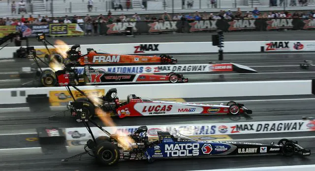 The stunning zMAX Dragway in Charlotte, NC, features the only four lane dragstrip in the nation, where the cars and stars of the NHRA Full Throttle Drag Racing Series will wage battle in the only four-wide national event on the schedule April 13-15, offering twice the ground-pounding, eye-watering, ear-splitting euphoria. Del Worsham (Top Fuel), Jack Beckman (Funny Car), and Greg Anderson (Pro Stock) are the defending event champions.