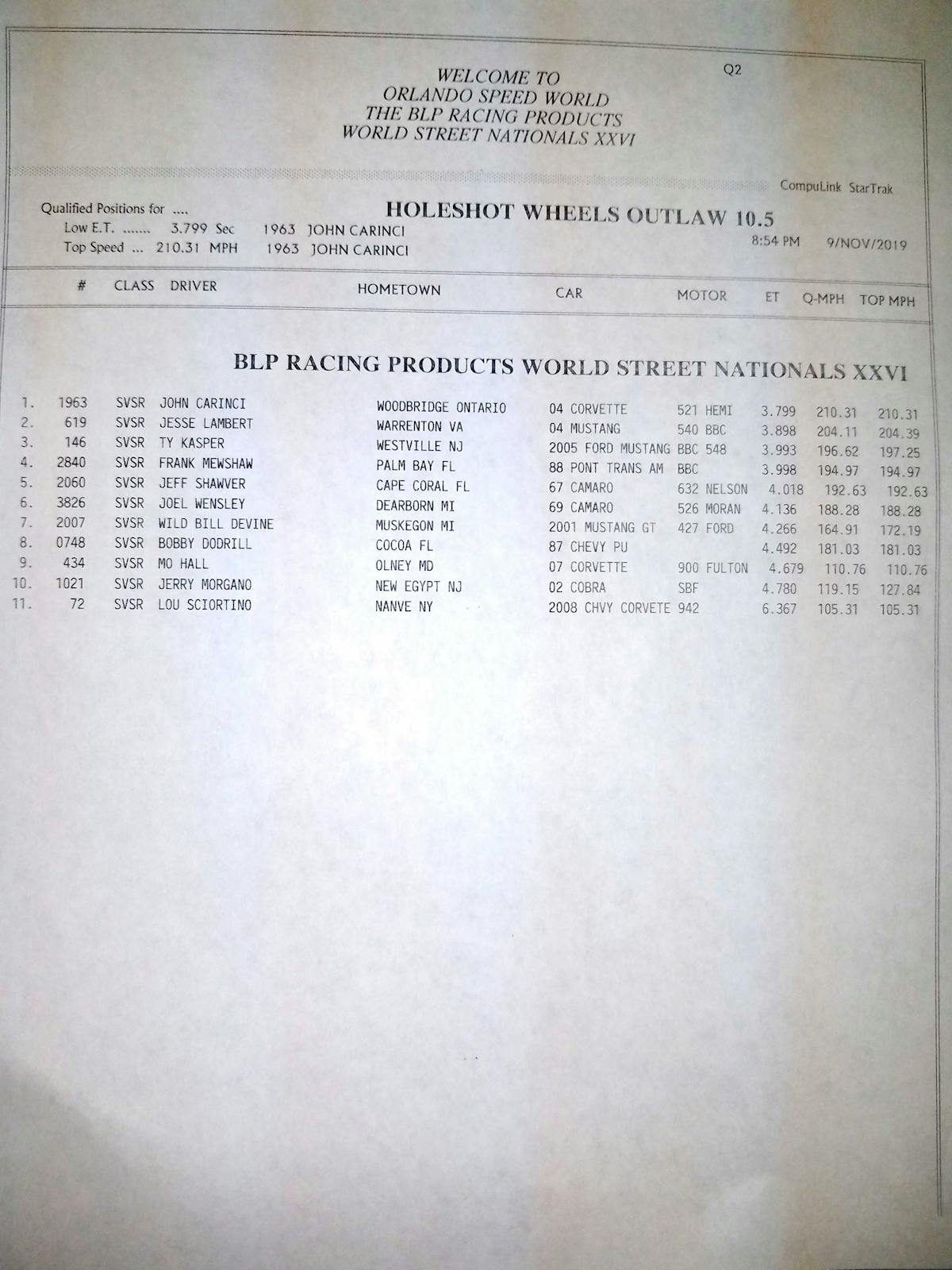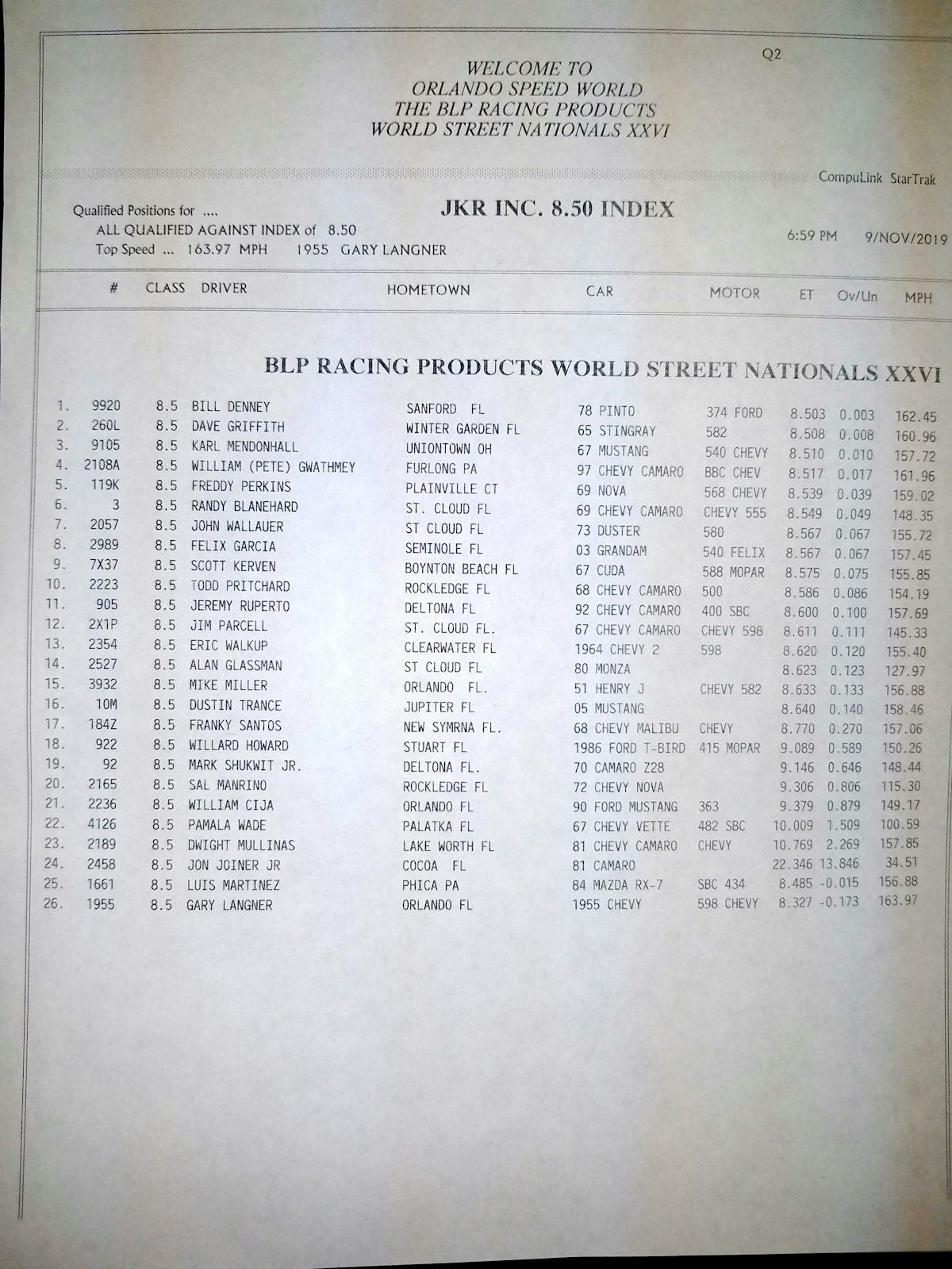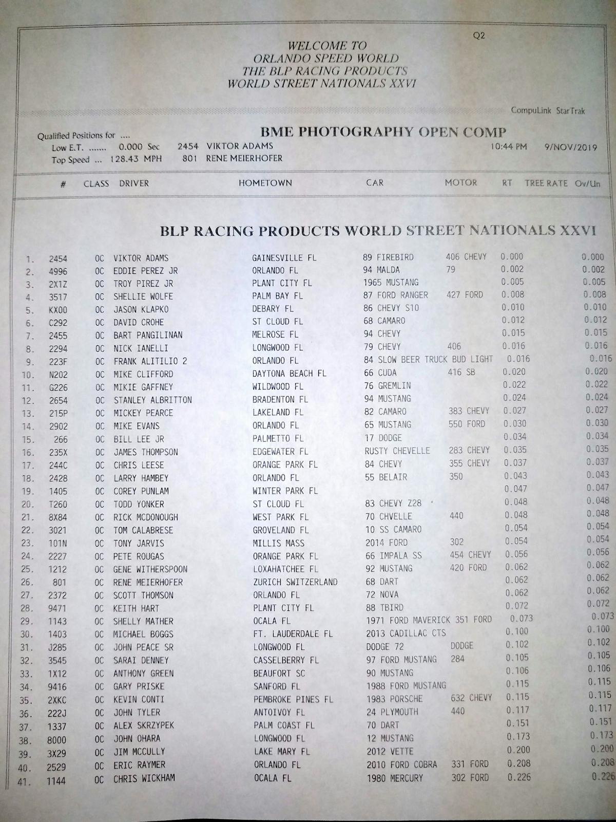 It’s hard to think it’s been twenty 26 of the Orlando World Street Nationals this weekend, but here we are for another amazing spectacle of speed and raw horsepower. This year we have 13 classes to run, including the new 1- Stop Automotive True Street, which will feature a street cruise on Saturday morning. Maximum Machine Works Heavy Street is also participating after a major revamp of the rules in an effort to mix things up and invoke the old school performance, with no wheelie bars and tagged and insured real street cars.