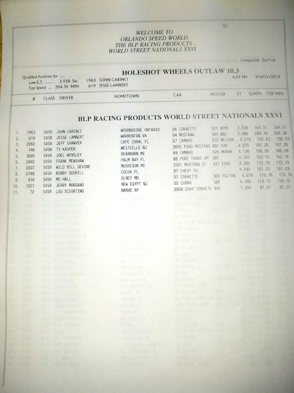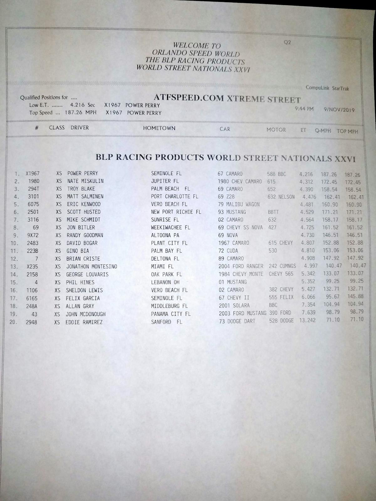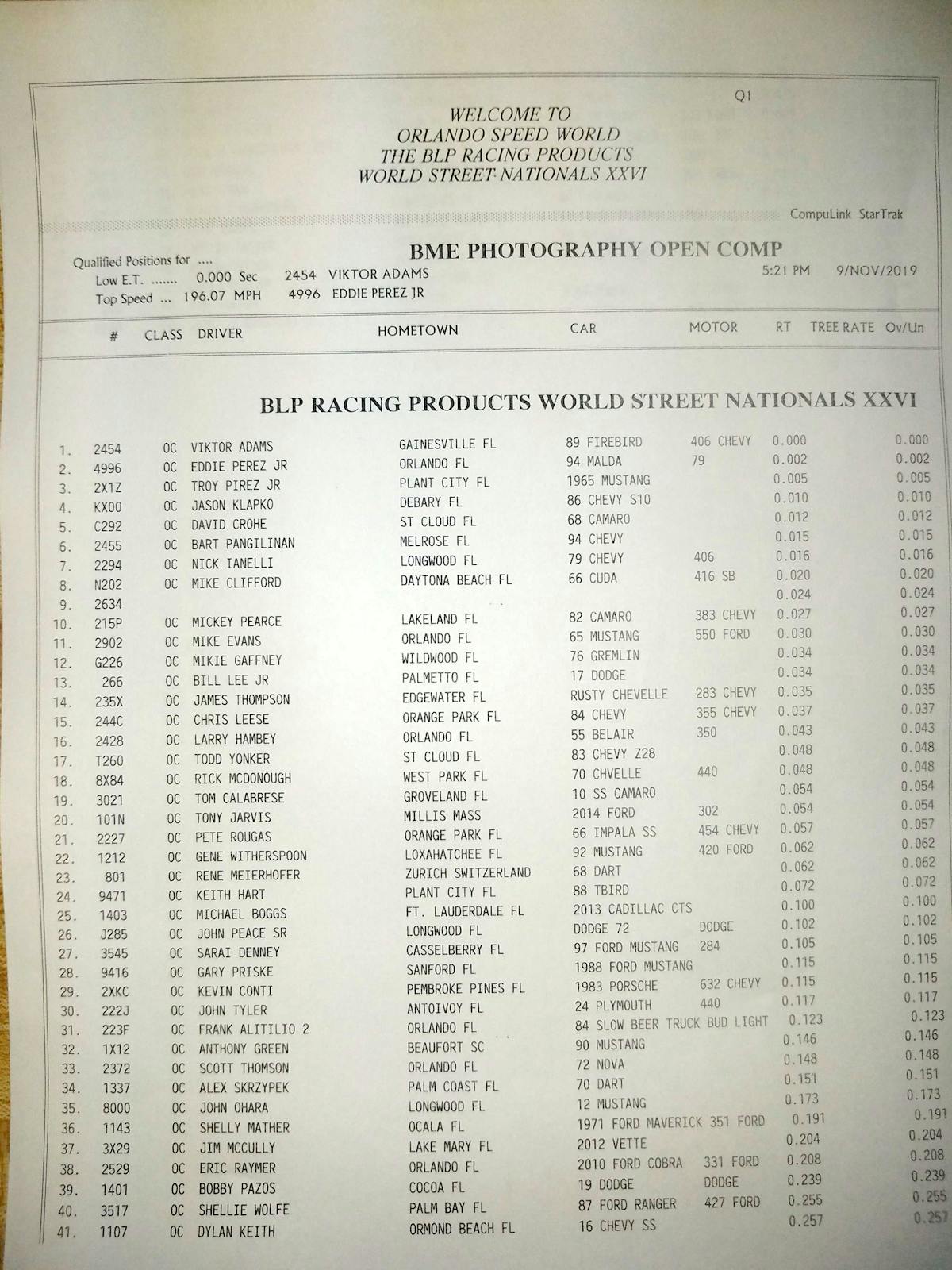It’s hard to think it’s been twenty 26 of the Orlando World Street Nationals this weekend, but here we are for another amazing spectacle of speed and raw horsepower. This year we have 13 classes to run, including the new 1- Stop Automotive True Street, which will feature a street cruise on Saturday morning. Maximum Machine Works Heavy Street is also participating after a major revamp of the rules in an effort to mix things up and invoke the old school performance, with no wheelie bars and tagged and insured real street cars.