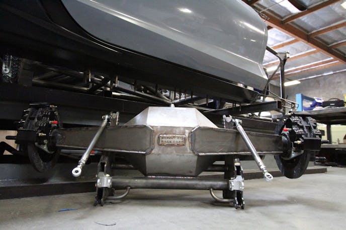 “Skinny Kid has a lot of experience with building these cars and knows what’s required when fabricating a heavy-duty rear-end that can take this level of abuse. The fabricated 9-inch is made of chrome-moly plates and has extra bracing along with larger axle tubes making it ideal for applications like this. Where the 4-link attaches and the parts used to attach it to the rear-end are also a lot stronger, as well, that just makes picking one of these the right choice,” Mandella explains.