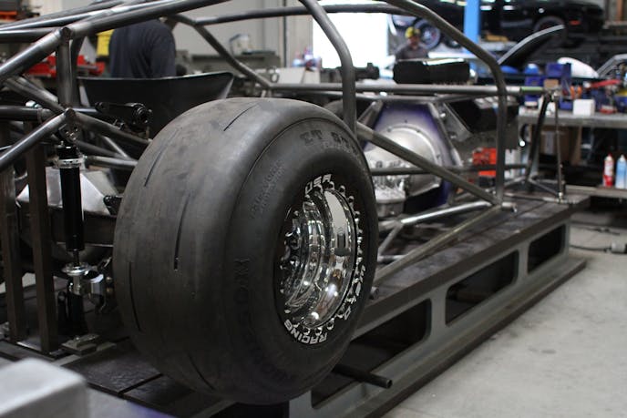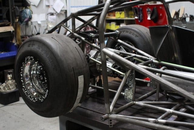 The rear suspension travel is one the key factors in making sure this car is going to work since it’s a tube chassis car that will be using a radial. – Tony Mandella“These aren’t big cars when you get down to it, so your driver is sitting literally right in front of that rear tire. When you compare your traditional radial tire cars like Mustangs and Camaros to the Corvette, they’re a bit bigger and give you more area to work in, where this car is just so compact on the inside. We’re dealing with a stock wheelbase and stock OEM frame rails which is another unique thing with this car — it’s not a Pro Mod where the body and wheelbase are stretched, creating space,” Mandella says.