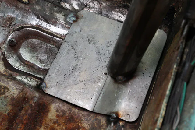 The Chassisworks roll cage kit comes complete with pre-cut 6-inch x 6-inch plates for your floor mounting. Per the NHRA Rule Book, “On unibody cars with stock floor and firewall (wheel tubs permitted), the roll cage may be bolted or welded to the floor/rocker box.” If you are going for the bolted option, the .125-inch steel plates must be on top and bottom of the floor and bolted together with at least four 3/8-inch bolts and nuts. Welding the plates to the car does not require the use of bottom plates but must be completely welded to the floor.