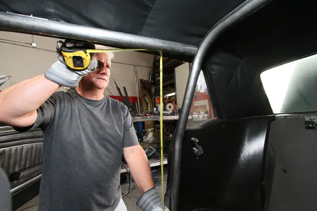 Generally the main hoop is installed as close to the roof or headliner as you can without it rubbing. The NHRA rules state, “All roll bars must be within six inches of the rear, or side, of the driver’s head, extend in height at least three inches above the driver’s helmet with driver in normal driving position or be within one inch of the roof/headliner in the area above the driver’s helmet, and be at least as wide as the driver’s shoulders or within one inch of the driver’s door.” You can lean the main hoop back or forwards to get the proper measurements as well. Additionally the bottom of the main hoop must be welded to a pair of the aforementioned 6-inch x 6-inch plates.