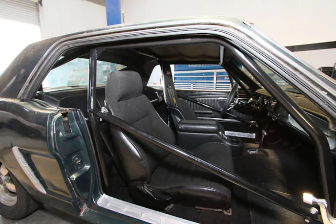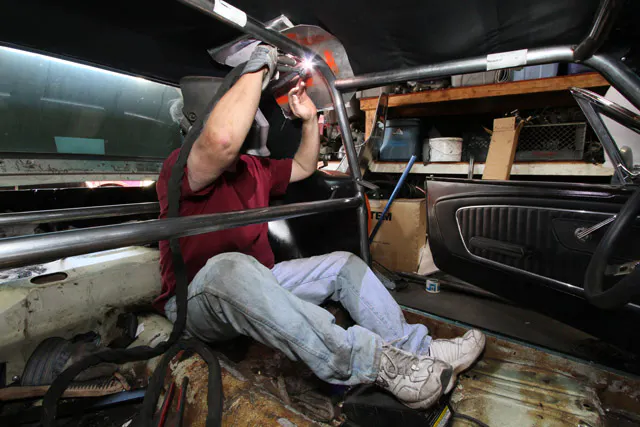 The saying, “Measure twice, cut once,” is something one needs to remember during the entire cage installing process. The pre-bent cages are purposefully made long to accommodate for variances in vehicle builds. Also, tack weld the entire cage in place before completely welding it to ensure a better fit. Additionally, whatever seat and seat mounts you plan to use for the vehicle should be installed. The driver, or someone of similar build, should be present for the variety of clearance checks. We took the Mustang to local racing shop Mckinney Motorsports to have the cage installed.