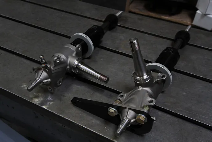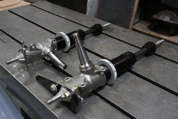 The base of the front suspension is the Quarter-Max A-arm kit, a solution that provides parts that can be modified to fit any project. This solid foundation for the front suspension allowed PMR to get a good start to helping create a system that will be adjustable and transfer weight correctly.