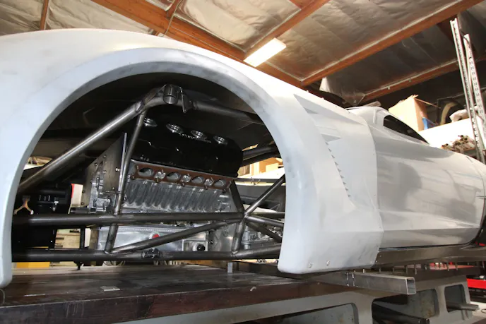 Everything started from the outside of the car with the framerails, and then worked to the inside. – Tony Mandella, PMR Race Cars“Everything started from the outside of the car with the frame rails and then worked to the inside.We had to use some measurements we could find off factory Corvette specs to find other points to build from,” Mandella explains. “After that, we used the OEM door surrounds to start the body since those attached to the Z06 framerails. The door surrounds went on, followed by the quarter panels, followed by the rear section, and then the doors were added. Once we had everything put together dry and body lines matched up we were able to move forward on the chassis. We really didn’t do any tube work until we had that body assembled from the OEM framerails.”