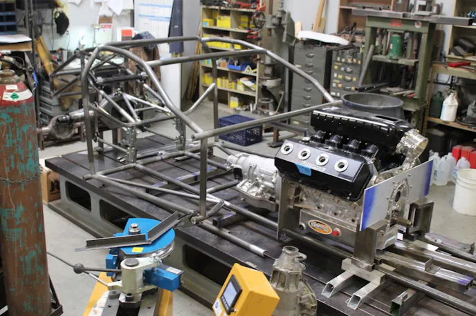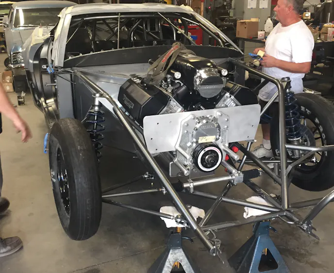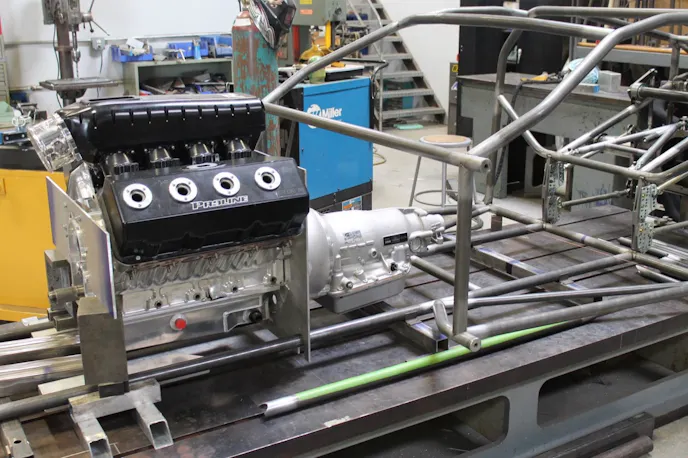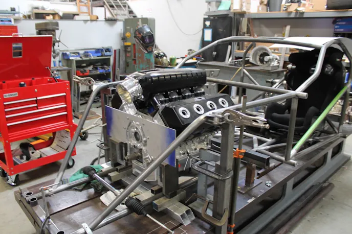 The firewall also played a role in the engine placement and required some considerable fabrication to make it work with the location that was established. “There’s nothing stock with this firewall at all. It’s all just welded steel panels into each section of the firewall using triangles. Everything is based around where the transmission and engine meet up. The mid-plate is actually being used as part of the firewall and we built off of it from there,” Mandella explains.
