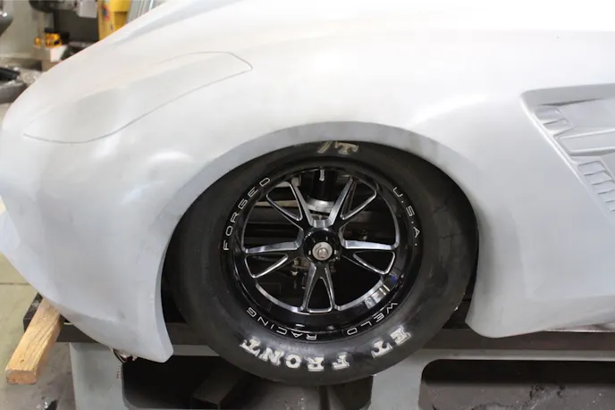 One of the biggest challenges with designing the front suspension and placing items in the front of a Corvette like BlownZ06 is the available space. The body itself creates limits on where you can put different items, and the wheelbase rules also dictate where the suspension can go. This saddled PMR with a new set of challenges in building BlownZ06’s chassis.
