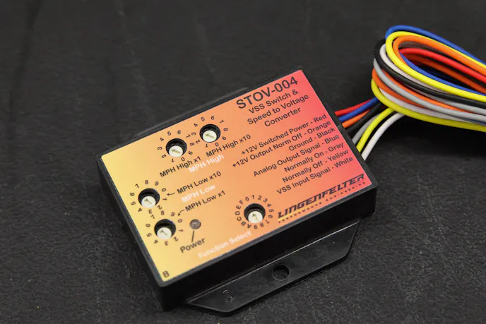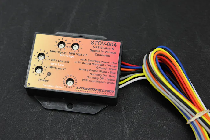 “The STOV-004 is a speed-based switch that can be integrated into a vehicle’s electronics pretty easily. Think of the STOV-004, much like an RPM window switch, but instead, uses the vehicle’s speed sensor to control components or devices. It can be used to turn on a component, turn off a component, or disable it all based on the vehicle’s speed. It also produces a gear shift output that can be used with other components, like boost or nitrous controllers that incrementally count the gear changes to change their programs,” Gledhill explains.