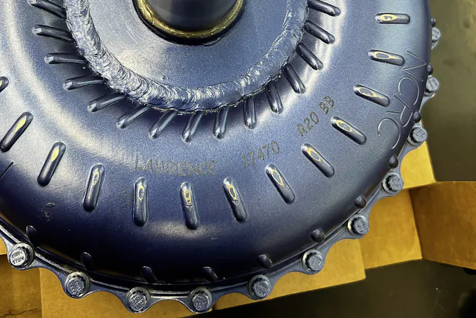 After looking at all the information we provided, Marty suggested we move to a bolt-together-style torque converter for True SStreet. An NCRC bolt-together converter is furnace brazed, has completely TIG-welded fins, and an anti-balloning cover so they’re very strong. Inside the converter, you’ll find an NCRC extreme-duty mechanical diode and thrust bearings. The star of the show is the custom stator that NCRC adds to the converter, designed specifically for your application.