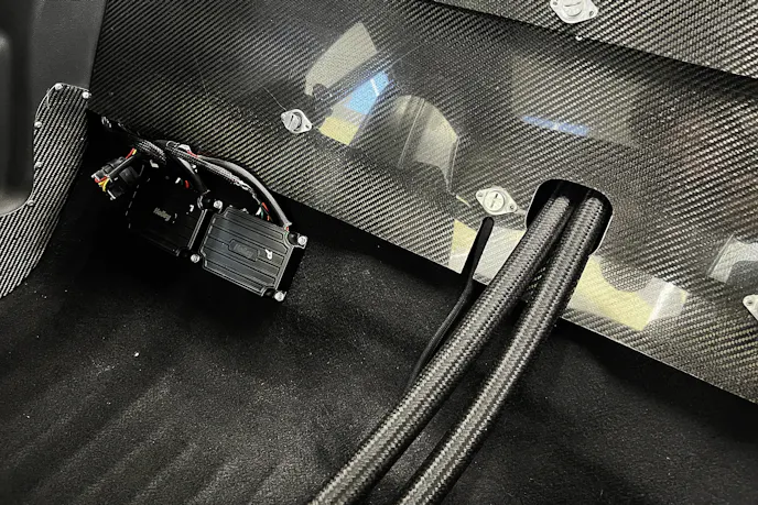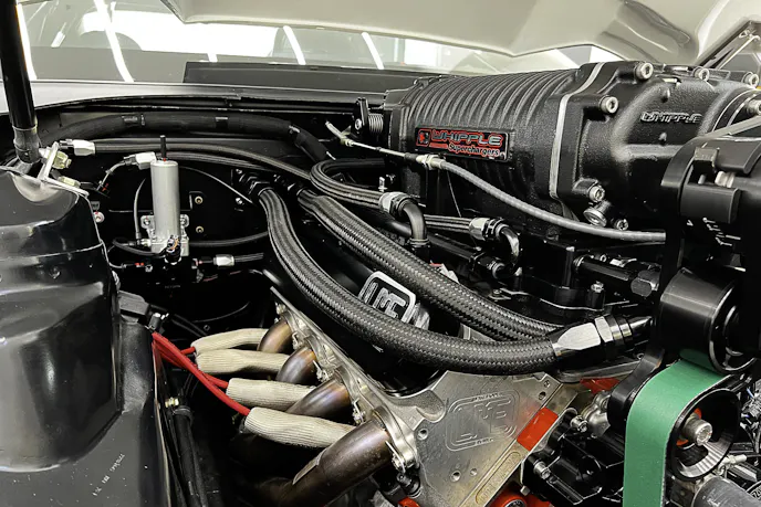 All of the extra chilled water would be useless, unless we could move it to the Whipple supercharger quickly and efficiently. To facilitate fast fluid transfer, the -12 AN lines and fittings were upgraded to -16 units from Earl’s. This new plumbing is a perfect match for our increased level of fluid flow. The result was a reduction in Idle Air Temperatures (IATs) from the 180- to 190-degree Fahrenheit range, to between 80 and 90 degrees. The added horsepower and increased tuning window provided is well worth the effort.