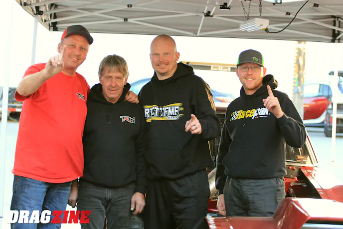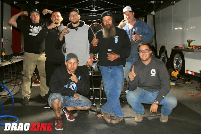 Brad uses Precision 102 mm turbos feeding an HED 4.84 bore space Chevy. The crew from left to right is Jeff Stapleton, Justin Harris, Brad Edwards and Cord Collins.
