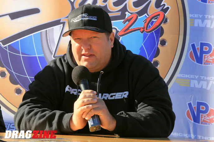 After this race the car will be set up back on the big tires for PDRA in a couple of weeks with the team campaigning two cars with John Strickland in the other seat. “I have to thank Mr. and Mrs. Wells for supporting us for everything. Earl and Peggy Wells, they own Galot Motorsports Park and they do well in tractor pulling and are very, very generous to give us the chance to do this. John has been the NTPA national champ three years in a row now driving for them. Of course ProLine and all of the people there, Steve Petty … he gives me a wonderful car. I mean the man is astronomical. Brandon Stroud and Chris Foster and Eric Dillard, the whole crew at ProLine are just unbelievable. Amazing. I mean undeniably I enjoy working with them. They are committed to bringing out a durable, high-performance product. Tyler Van Lant works with us closely but the whole team there at ProCharger has been behind us all of the way.”