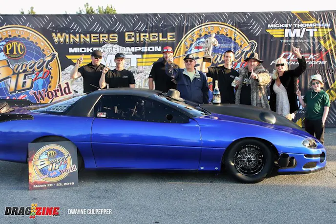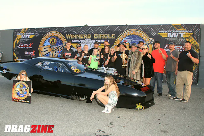 The PTC Radial vs the World Sweet 16 2.0 runner up was Mr. Norman Bryson representing for the nitrous racers and coming from the 13th qualifying position. “We threw the sink at it.” he said. “We had to. Rivenbark had been running good all weekend. We didn’t know what it was going to do but we had to try something big to go for the win. I didn’t have a chance on this one, he was gone, so hats off to him for the win. I have to thank Jesus Christ my savior first, my wife Tonya, my family. I have eight children: Lee, Mercedes, Alex, Kaitlen, Tyson, Jonathon, Brendan and Mason. My son-in-law, Brent Rainer, Josh Anderson, Bud, Jack and Joey Greene, Tony, all those guys that are part of our family and we all been together for a year. Robert Bone, who is my life long friend, Pat Bennett Race Cars, Billy Albert Race Engines, Mark Micke transmission, everybody has worked so hard to get us here. We came up short. I’d like to win but I’m thankful and honored to be here.”