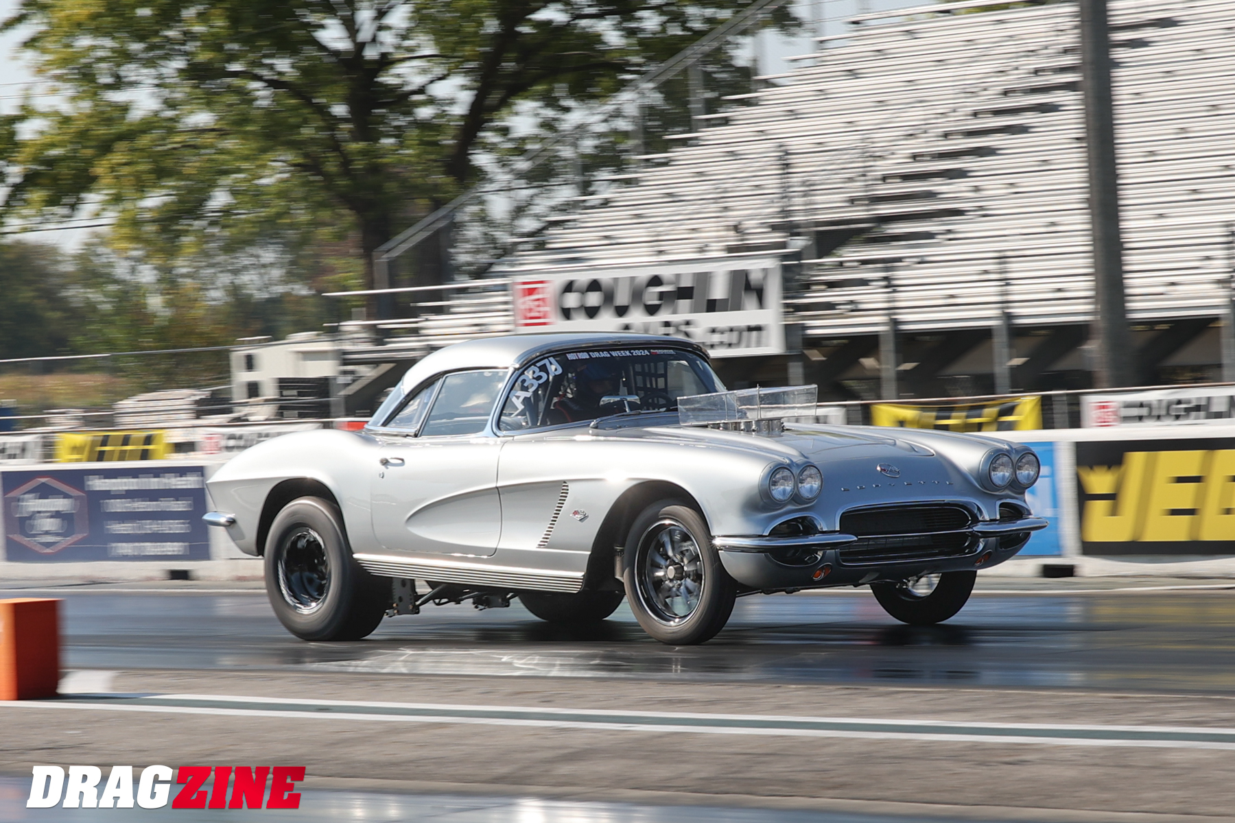 David Schroeder and his nitrous-fed Corvette fell victim to mechanical gremlins first. The big-block Chevy that powers Schroeder’s Corvette devoured its street-trim rocker arms, thus ending his week before the second day of racing began.