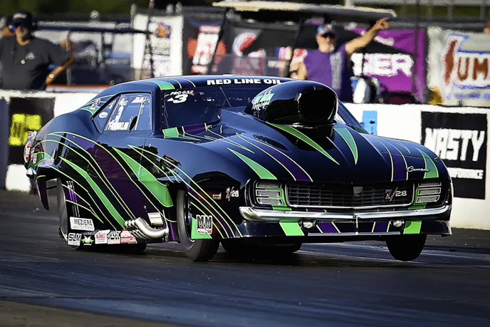Pro 632 points leader Amber Franklin Denton went into DragWars with a sizeable lead, but she knew her path to a second Pro 632 world championship wasn’t a clear one. Qualifying No. 1 made it a little clearer, but she had a full field of consistent and competitive racers standing in her way. The past Pro Jr. Dragster world champion held her own and locked up the championship before taking down championship runner-up Walter Lannigan Jr. in the final round. Lannigan grabbed a slight holeshot, but Franklin’s Musi-powered “OG Jungle Rat” ’69 Camaro laid down a 4.16 at 171.82 to drive around Lannigan’s 4.188 at 169.30.
