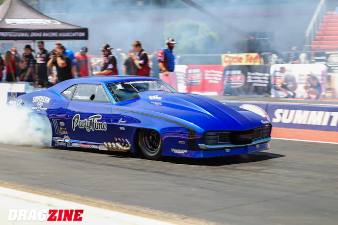 “After last year, just throwing it away, I knew this year I had to step up and do a better job and get a lead because these guys will come crawling back at the end,” said Powers, who credited his team, including Samuel, Rob Bealko, and son Chris Powers II. “Hopefully this will almost seal the deal. We’ve got a brand-new bullet from Sonny’s. We’re going to put it in and see if we can put this thing in the 3.99 range. That’s the last goal we’ve got left here. We’re so thankful for Sonny’s. They’ve worked for months on this new motor, trying to get some power for us and we need it. We’re just behind, hopefully this new bullet gives us everything we need. My main objective there is to go and win [the World Finals] and set the record and put this thing to bed for once and all.