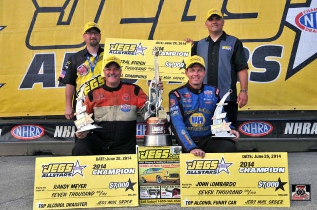 The Central Region team won the overall title in the special Top Alcohol Dragster portion of the JEGS Allstars competition thanks to a victory by decorated racer Randy Meyer. Hailing from Spring Hill, Kan., Meyer defeated West Region racer Joey Severance in the final, 5.36 to a shutoff 7.86.