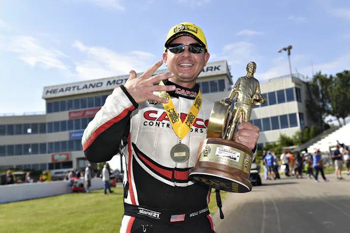 Defending world champion S. Torrence raced his Capco Contractors dragster to a run of 3.750-seconds at 326.16 mph to defeat B. Torrence’s 3.768 at 326. S. Torrence was the No. 1 qualifier, secured his first event victory at Heartland Motorsports Park and the 32nd of his career.