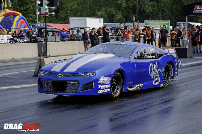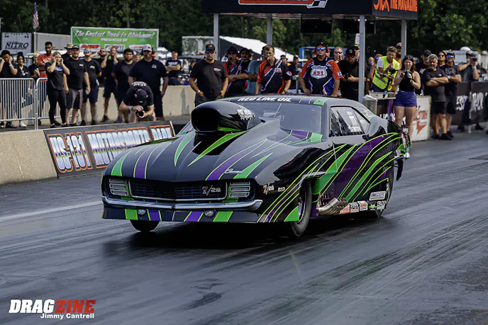 In the cooler conditions, 10 of the 17 cars qualified with a sub-four-second time slip. In the last round of qualifying, it was the big man himself, Fletcher Cox, in his nitrous-assisted, Phil Shuler-tuned, Musi-powered Camaro with a 3.829 at 192.31 mph blast that sent him to the top spot. Cox would work his way through the field before he fell to the eventual event winner and current class champion, Ethan Steding. Steding made it to the finals, getting wins over Jake Blain, Nick Agostino, and Fletcher Cox.
