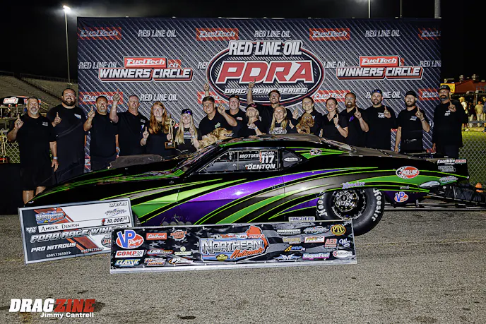 It was an all-hands-on-deck effort to get both cars ready to run each other in the finals. Racers and crews from other teams helped the Franklin/Denton teams with parts, labor, and even a complete engine so that the final round would happen. Due to the borrowed engine not being the same combination, the teams decided to run the finals as equal as possible. So, they decided to run the race all motor with no nitrous on either car. In one of the craziest Pro Nitrous (with no nitrous) finals, Amber Denton was able to get the win over her dad, Tommy Franklin, by a mere 0.006 of a second.
