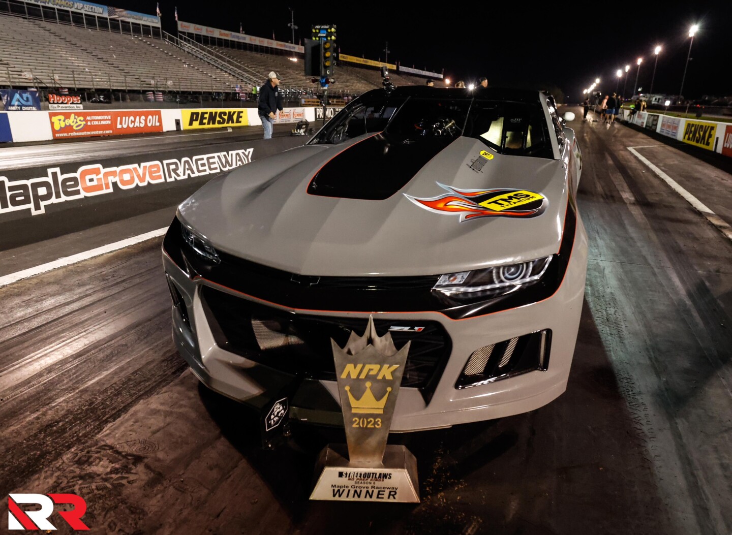 In the final, Martin left well ahead of Howe – who also had crashed earlier this season and only recently returned to the tour with a fresh and improved Camaro — and drove away from the screw-blown machine, taking the win by several car lengths as his ProCharger-boosted, Pro Line Hemi-powered mount thundered off into the Pennsylvania darkness.