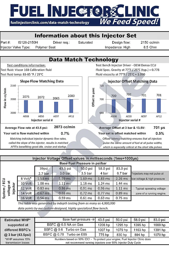 “Choose an injector that has good data included with the injector, or that can easily be found. Tuners will chase their tails with a slew of issues that all really stem from bad data or no data. The computer needs to know precisely how long to open the injectors to get the desired amount of fuel, and it can’t do that without proper data. It really does make the tuning process much smoother having an injector that comes with good data,” Santarpia explains.