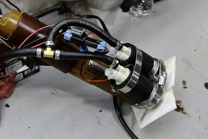 So how does that math work out in the real world? “So, in this case, you’d multiply 750 by .7, and that calculates out to 525 pounds per hour of fuel that you would need. And 525 lbs/hr equates to about 330 liters per hour. You can find calculators online that will do this conversion for you. I also add a minimum of 20-percent extra capacity to that for safety, so here you’d end up with a pump that outputs 400 liters per hour — and that’s if you never plan to upgrade the motor. You also might want to build in a little more headroom than that if you’re making crazy-high horsepower numbers to keep the engine cool and that sort of thing,” Flynn explains.