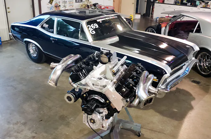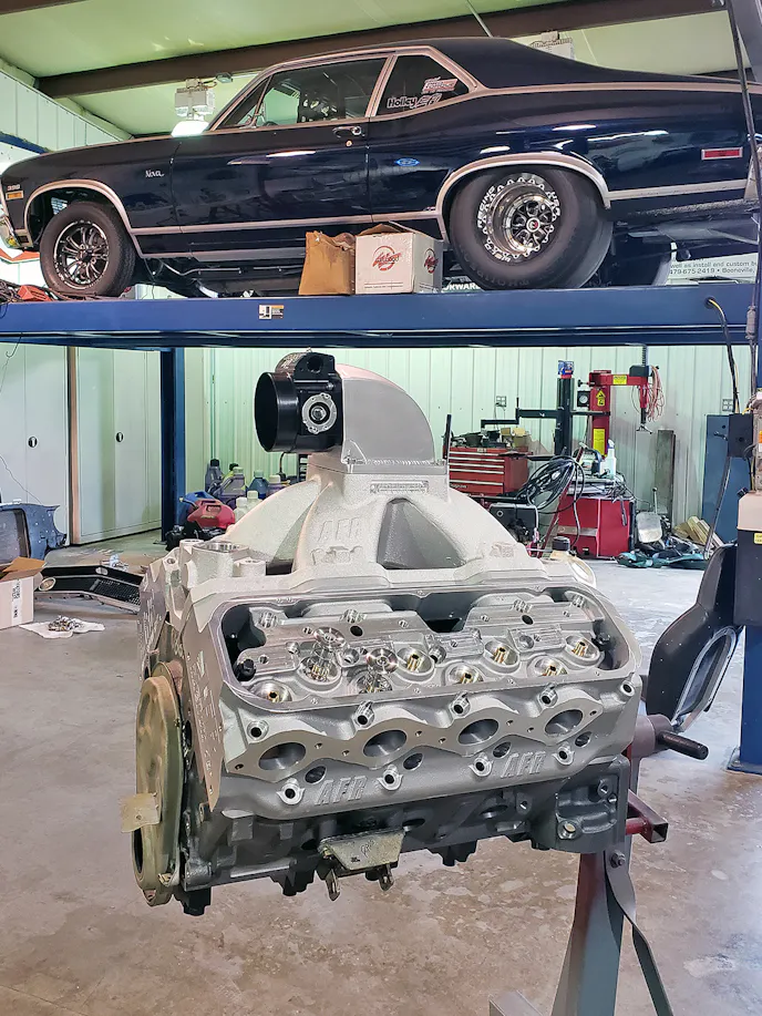 Debbie and Dennis Taylor compete in the Super Street Big Block Power Adder (SS/BBPA) class in their 1972 Nova. The new powerplant for this year was a turbocharged 509 cubic-inch tall deck big-block Chevy. Taylor applied the new Magnum 18 heads and intake to an engine that not only needs to make massive power at the track but also must live for miles over the highway.