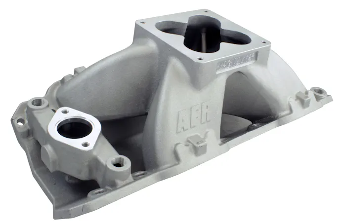 With the relocated height of the intake ports on the Magnum 18 heads comes a matched AFR Magnum series intake manifold for proper port alignment. They are available for 10.200- and 9.800-inch Chevrolet block deck height with a single 4500 carburetor cloverleaf flange. AFR intakes are designed to run “as cast” and offer plenty of material for generous porting options.