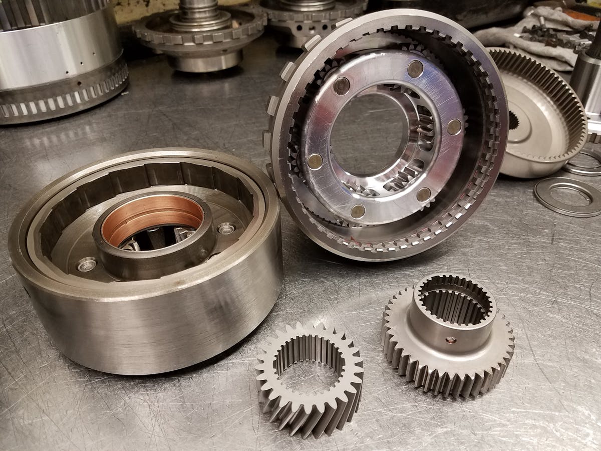 The reaction carrier in our transmission, not part of Coan’s kit, is entirely OEM refurbished, including the shell and pinions.