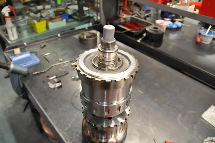 “This transmission includes the maximum number of race lined clutches and high-grade steels that can be installed in its custom drums, which greatly increases the torque holding capability. The 1.60 low gearset is a six-pinion design versus a four pinion OEM design and is also made from high-grade material. By using a 1.60 gear versus an OEM 2.48 gear, this allows the car to hook on marginal tracks with big power and a small tire. The input, main shaft, and output shaft are all manufactured from high-grade materials that can withstand large torque loads. The input and main shaft are also larger in diameter than OEM, as well.”